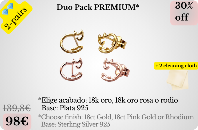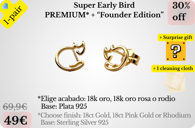 Elige 2 pares con uno de estos acabados premium: Oro 18k, Oro rosa 18k o Rodio. El acabado final se elige al finalizar la campaña con éxito mediante un cuestionario que te enviaremos.