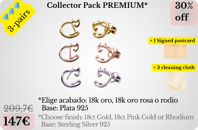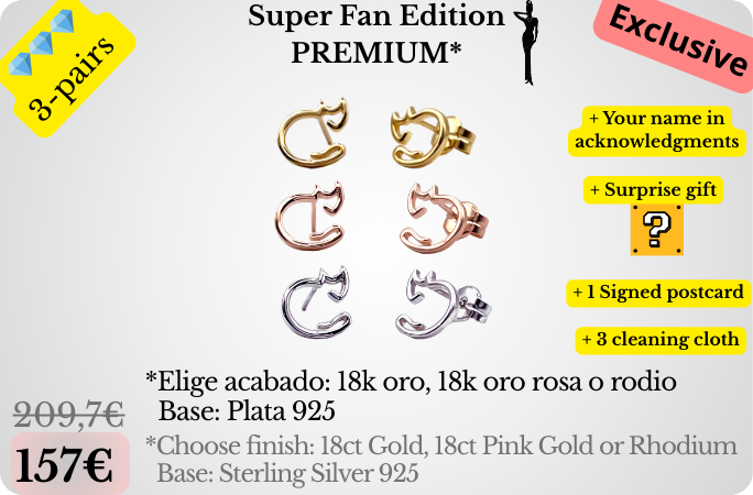 Elige 3 pares con uno de estos acabados premium: Oro 18k, Oro rosa 18k o Rodio. El acabado final se elige al finalizar la campaña con éxito mediante un cuestionario que te enviaremos.